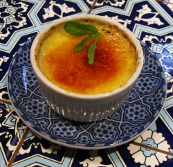 And here is a really scrummy-looking photo of our featured dessert, made by yours truly: Chai-Spiced Creme Brulee.